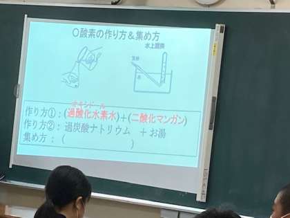 5月18日 2年生理科 公開日 2021/05/18 更新日 2021/05/18 学校行事 2年生の理科の授業です。 酸素の作り方について学習しています。 過酸化水素と二酸化マンガンからつくります。 いいね(0)