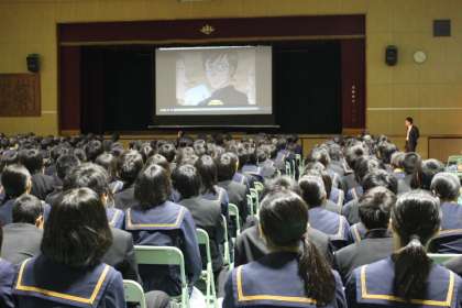 本日は1、2年生の土曜授業の日でした。大阪リバーサイドロータリークラブの方をお招きし、職業講話を行っていただきました。