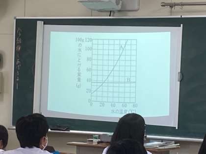 6月1日 2年生理科 公開日 2021/06/01 更新日 2021/06/01 学校行事 2年生理科の授業です。 水の温度と水に溶ける質量の関係について学習しています。 塩化ナトリウムを表すグラフは、A、Bのどちらのグラフでしょうか? いいね(0)