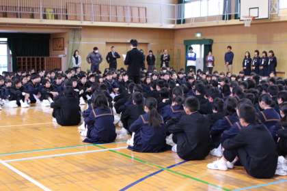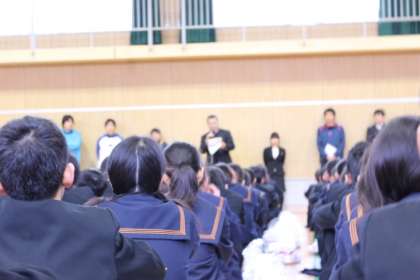 始業式では校長先生が3年生、2年生、1年生にそれぞれの学年に臨む心構えや態度についてのお話がありました。