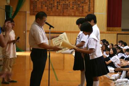 大阪市と全国の大会で優秀な成績を収めた生徒の表彰です。