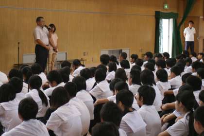 全教室のエアコン完備により、例年に比べ一週間早い二学期の始まりです。本日の始業式では、夏休みに行われた様々な大会の表彰と、校長先生の話、そして新しく着任された英語の先生の紹介がありました。