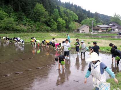 天候が心配されましたが、小雨の中「田植え体験」を実施することができました。