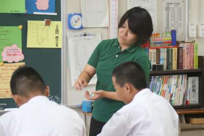 1時間目青空教室では、英語の先生による特別支援学級の授業が2,3年生を対象に行われました。週に一度は英語科の先生による少人数の授業が行われています。生徒の習熟に合わせて課題をかえながらの指導です。