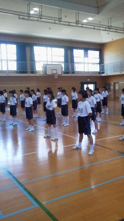 体育館から元気な声が聞こえてきました。みんな元気いっぱい掛け声をかけて、集団訓練で整列等の、練習を繰り返し行っていました。
