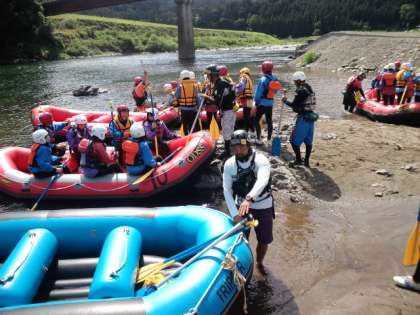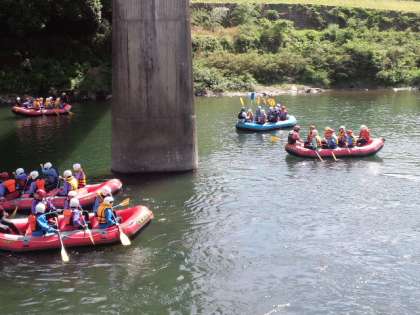 日差しが強く照りつける中、ラフティングでは力強くオールを漕ぎました!