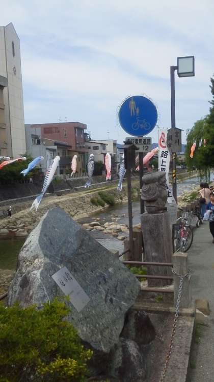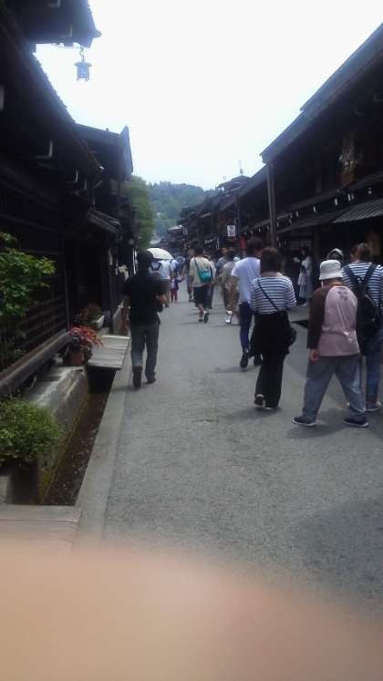 高山市内自由散策です。ソフトクリームやみたらし団子、食べながらグループで楽しんでいます