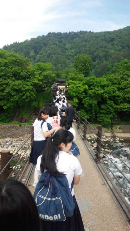 白川郷に到着しました。長いつり橋を渡ったあと自由散策です。