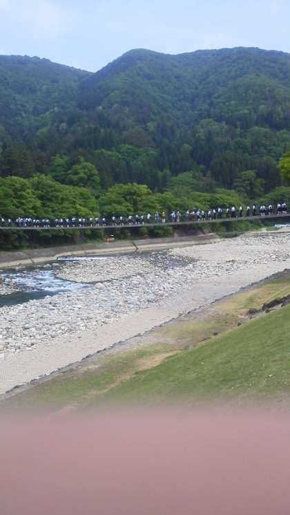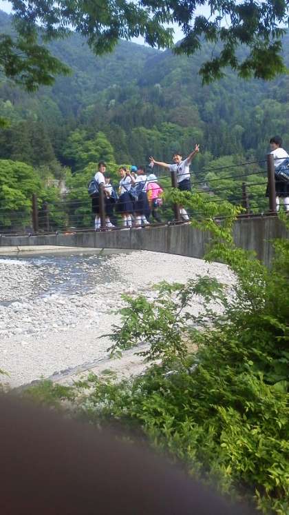 白川郷に到着です。であい橋を渡ると、世界遺産の集落がありました。合掌造りりの家が印象的です。