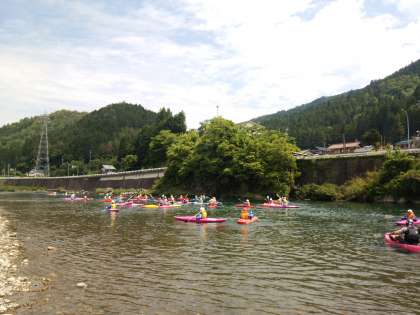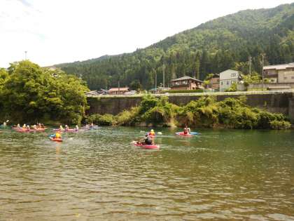 カヤック班は川に入りました。カンカン照りのお天気の下、冷たい水が気持ちよさそうです。