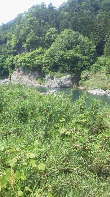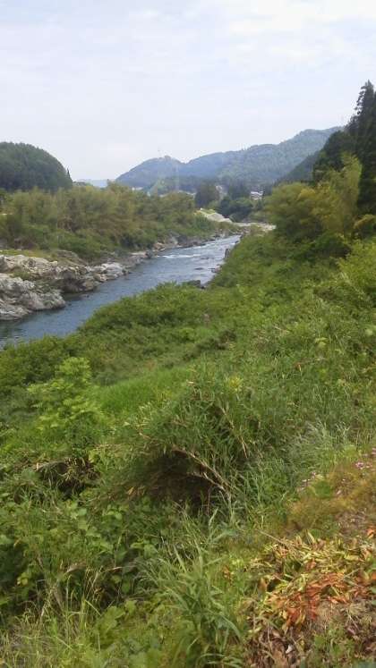 近くに子安神社があり、お参りをしました。少しいくと、子安温泉があります。川沿いまでいくと、長良川が勢いよく流れています。この上流がラフティングの出発点です。