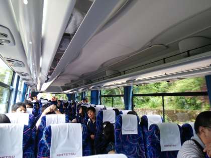 昼食終了後、午後からは長良川にてラフティングを行います。バスに乗って目的地へ向かいます。