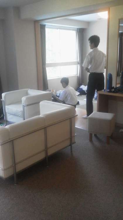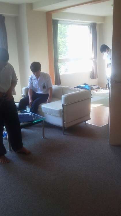 出発前、荷物の整理も、部屋の片付けも、完璧です。今から3年生全員で写真を撮ります。8時には出発の予定です。