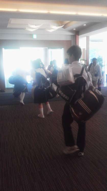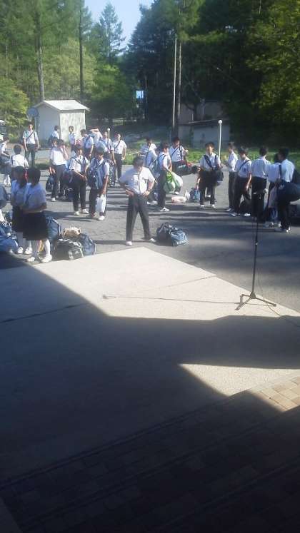 ホテル前に集合しています。これから、退館式をおこなう前の様子です。