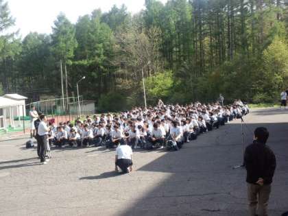 本日も晴天です。朝食を終え、宿泊施設の退館式を行い、現在高山市内へ向けて移動中。