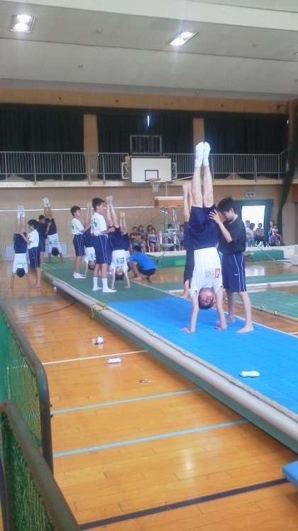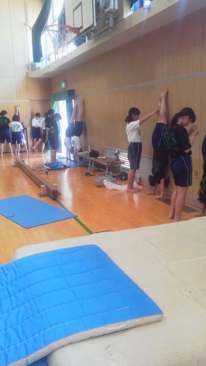 倒立から、連続倒立、ウォーミングアップと続き、スムーズに練習を行っています。