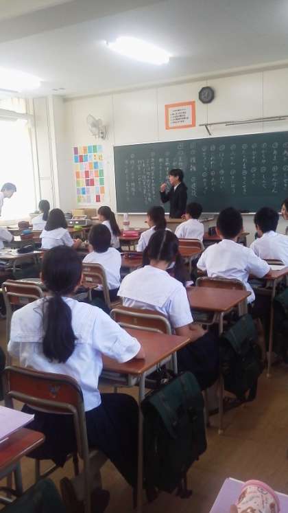 教育実習生が初めて教壇に立って、授業を行っていました。