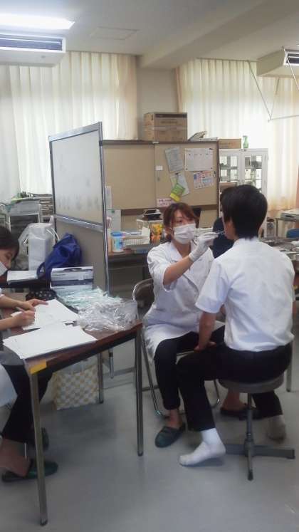 校医先生の診察後、大阪大学歯学部の学生さんが、診察をされます。