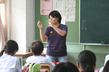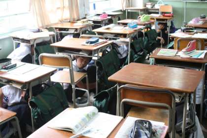 訓練後には、教科担当の先生から地震へ備えることの重要性について指導がなされました。1年3組では英語科の加藤先生から「阪神・淡路大震災」で学んだ経験が語られ、生徒らは先生の実体験に深く耳を傾けていました。