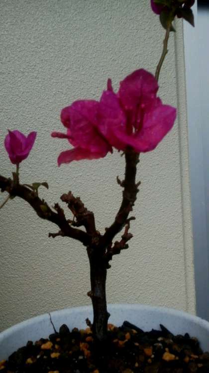 まっ赤色の花をつけた小さな植木が学校に咲いていました。