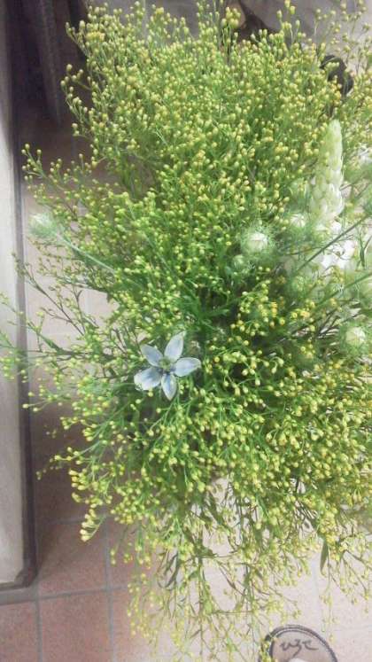 水色の花はニゲラといい、花言葉は「ひそかな喜び」。
