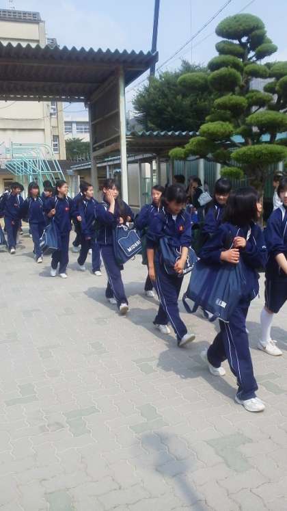 バスの乗車の体制をつくり、5組からバスに向かいました。