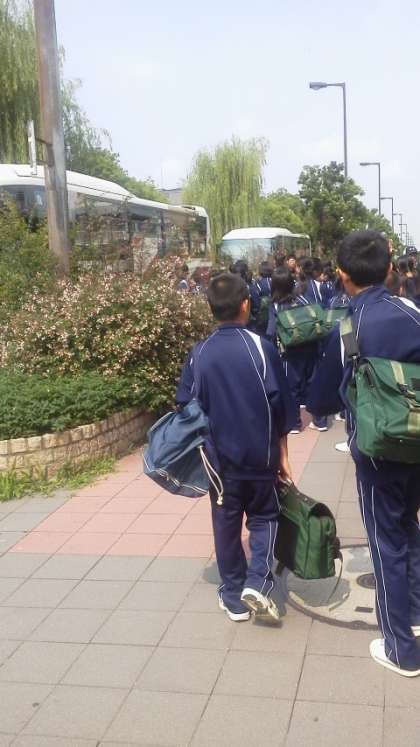 最後のクラスがバスに乗車し、全員乗車完了しました。