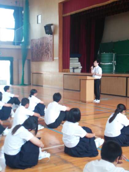 本日6時間目に、3年生に対して実習生の先生よりお話をしていただきました。