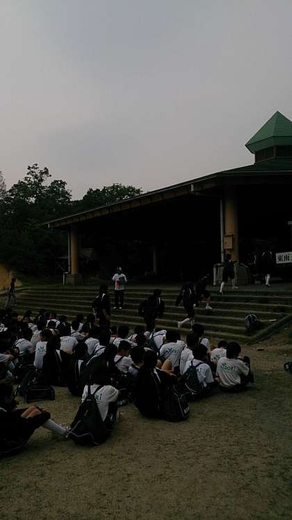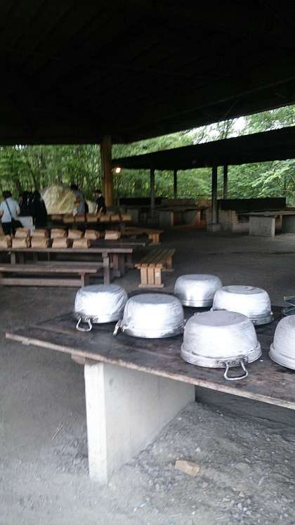 説明を聞いていまから野外炊さんをします。 ポツポツ雨が降ってきました。