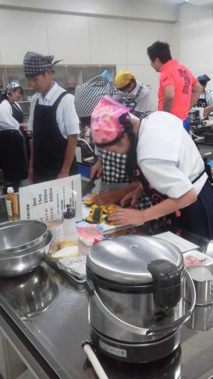 下ごしらえに、かぼちゃとなすびを切り揃えていました。