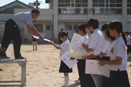 日中の気温も下がり、一日を通して過ごしやすい季節が訪れました。校長先生からは、読書やスポーツに集中して取り組めるこの季節を大切に過ごすようにお話がありました。
