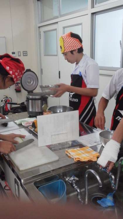 まずは、下ごしらえから始めます。男子生徒がお米とぎ始めました。