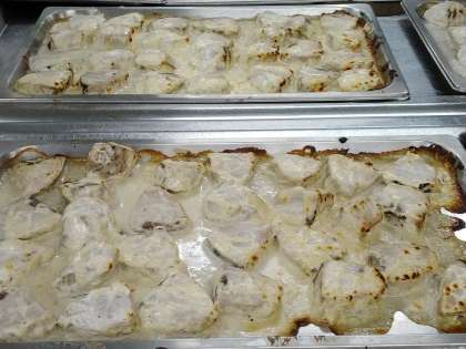 かつおは日本の太平洋側を回遊し、北上する春に獲れる「初がつお」と南下する秋の「戻りがつお」が知られています。「初がつお」は味が淡白ですが、「戻りがつお」は脂が多く、カルシウムの吸収を助けるビタミンDも多く含んでいます。また、身の赤い魚には、鉄も多く含まれています。私たちの食生活で不足しがちなカルシウムや鉄の補給ができますので、旬の時期においしくいただきましょう。今日は、塩、こしょう、ノンエッグドレッシングで下味をつけて焼きました。(2枚目の写真)