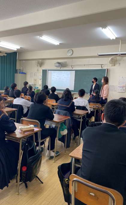 2年生では「多様な性について考えよう」をテーマに学習しました。11/11(金)に視聴覚教材で事前学習を行い、11/14(月)と11/15(火)の2日間は、外部から来ていただいた2人の講師の方から各教室でお話を聞きました。