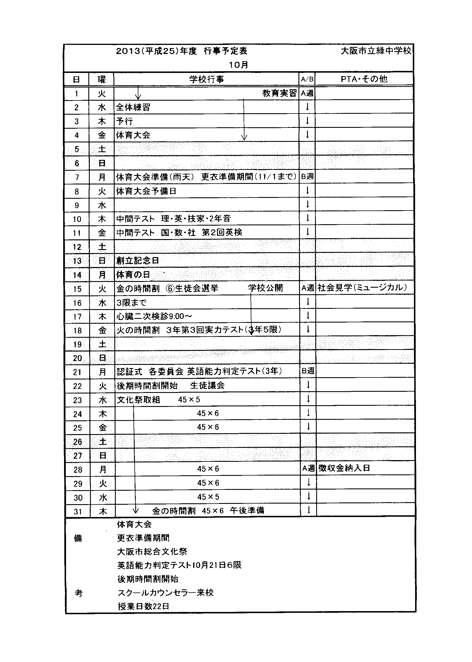 10月4日には体育大会が控えています。体育大会に伴う特別時間割に加え、月中行事も掲載しました。あわせて食育通信もご覧ください。