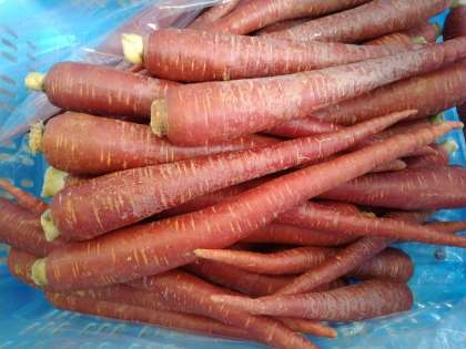 地中に根を張り力強く成長することから、その土地に根付いて安泰に暮らせるようにという願いをこめて食べられるごぼうを使った「きんぴらちらし」、なにわの伝統野菜の一つである金時にんじん(2枚目の写真)を使い白みそ仕立てで関西風の「ぞう煮」、田作りとも呼ばれることから、豊作を願って食べられる「ごまめ」を組み合わせました。