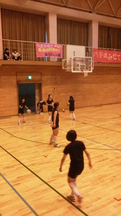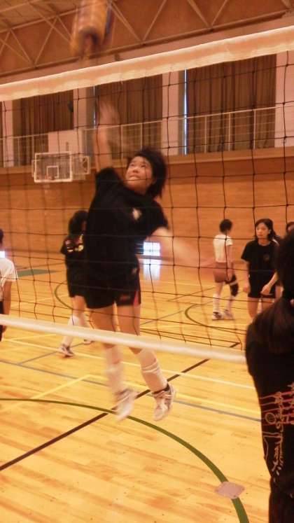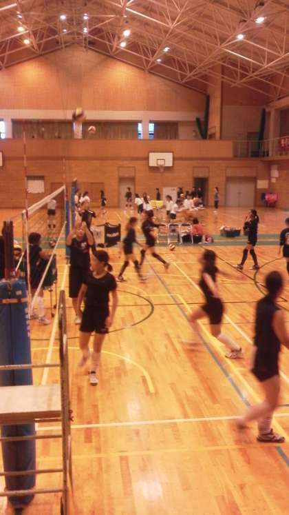 スパイク練習が終わり、今からゲームを始めます。2日目ですから、怪我をしないように注意します。