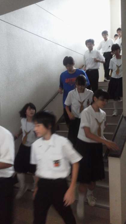 冷静に落ち着いて行動し、迅速に集合・点呼と手際よく生徒の安全確認をしました。
