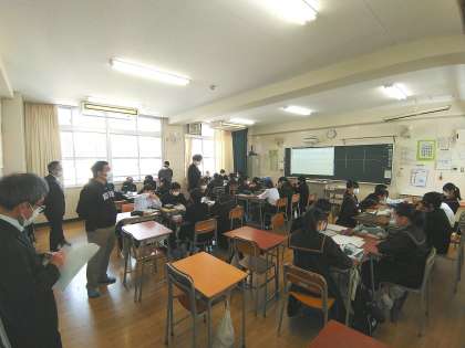 きょうの1時間目、大阪市教育センターからスクールアドバイザーの先生にお越しいただき、子どもたちの学習の様子を参観していただきました。大型連休明けの最初の授業でしたが、好きな国を紹介するキャッチコピーを考える課題に、班で協力して取り組めていました。
