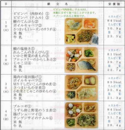 10月からの献立を掲載いたします。 ご確認ください。 10月給食献立 11月給食献立