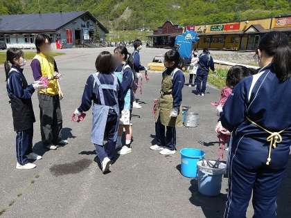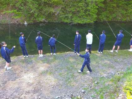 最後の体験活動です。釣った魚をさばいて塩焼きです。草木染め、ジャムつくりなど選択体験を行いました。