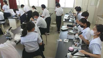 頬の内側の粘膜細胞など、動物細胞と植物細胞を観察しました。