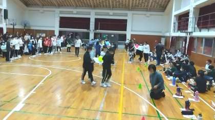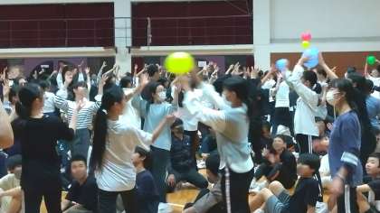 風船運びやピンポン玉スプーンリレーなど、室内オリンピックで盛り上がりました。レク係のみなさん、ありがとうございました。