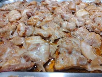 給食では、もも肉、むね肉、ささみ、ひき肉、レバー(ペースト)などを料理に合わせて使い分けています。今日のしょうゆバター焼きには、皮を取り除いたもも肉を使いました。もも肉はうま味が多く、しっかりと噛み応えのある肉質です。たんぱく質はもちろん、発育のビタミンとも呼ばれているビタミンB2や鉄を含んでいるのが特長です。