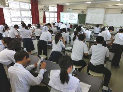 理科室で、水中の微生物の顕微鏡観察を行っていました。