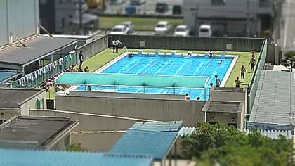 まさにプール日和。水泳の授業は、水が気持ちいいでしょうね。