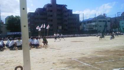 最初の種目は、3年生の50m走です。 ガンバレと応援の声が聞こえてきます。