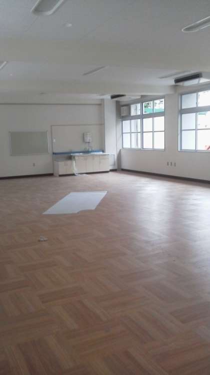 階段を挟んで、被服室と続いています。教室内の写真は多目的教室です。