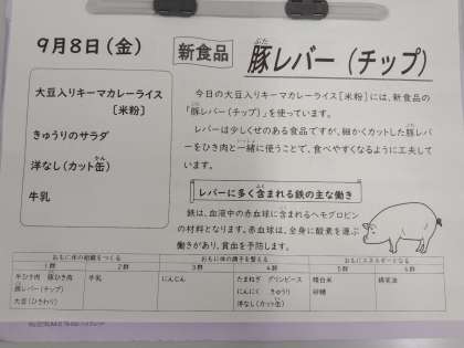 今日の給食(9.8 豚レバー)