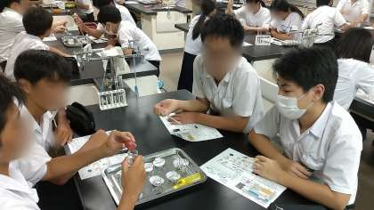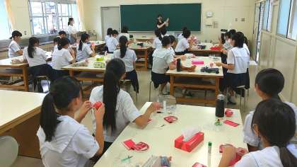 エアコン設置のない理科室の実験や被服室でのおもちゃづくりなど、大変暑かったですが頑張っていました。教室でドローンが自由に飛び回っているのもびっくりでした。高校では、より高度で専門的な学びができるので楽しみですね。